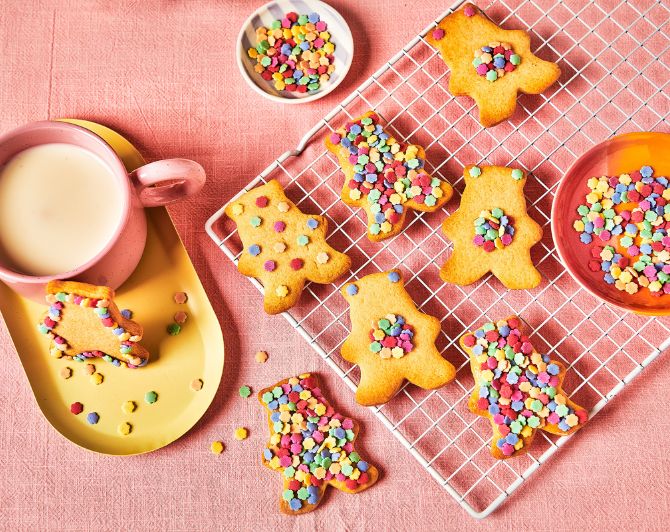 2. Bestel jouw bakpakket met koekjesmix, vrolijke sprinkels en leuke uitsteekvormpjes.