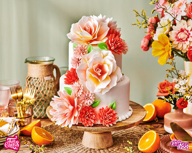 Ga je binnenkort een bruidstaart maken of lijkt het je leuk om eens helemaal uit te pakken en een taart te maken zoals deze? Dan zijn de Wafer Flowers van FunCakes onmisbaar! In de basis is de taart namelijk vrij ‘eenvoudig’ te maken, maar zodra je de eetbare bloemen erop plaatst, ziet hij er meteen spectaculair uit. En het fijne aan deze eetbare taartdecoratie: je hoeft je geen zorgen te maken of het veilig is om te eten, zoals met echte bloemen.