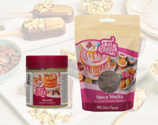 Trends komen en gaan, maar sommige smaken blijven je bij. Eén zo’n smaak? Pistache! Combineer dat met de luxueuze allure van Dubai en je krijgt de nieuwste hype: de Dubai Choco Bar. En het goede nieuws? Met de FunCakes Spread - Crunchy Pistache kun jij deze trend heel gemakkelijk zelf maken.