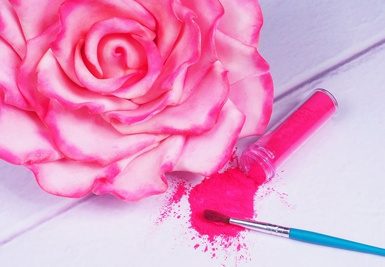 Les poudres colorées non comestibles sont idéales pour appliquer une couche de couleur sur diverses décorations, comme des fleurs. Ces poudres sont également disponibles en versions avec une subtile touche de paillettes, ajoutant un effet scintillant supplémentaire. Vous pouvez également créer de la peinture non comestible en mélangeant la poudre colorée non comestible avec du rejuvenator spirit.