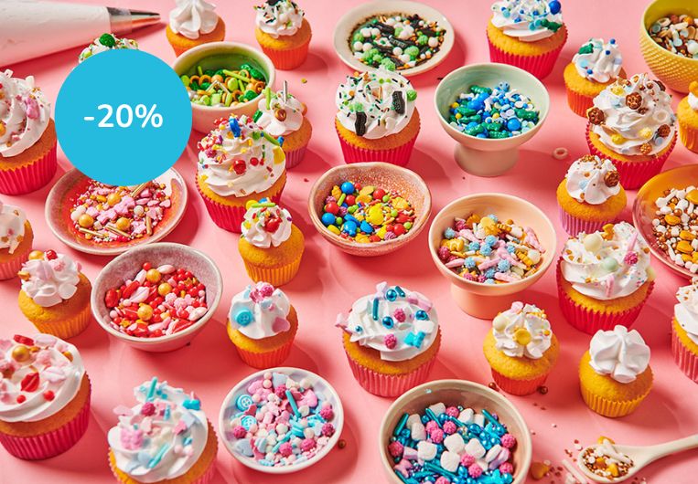 Il est temps de décorer. Offrez à vos créations pâtissières une touche finale festive avec nos sprinkles. Que vous prépariez des cupcakes, des biscuits ou un gâteau spectaculaire, les bons sprinkles feront de chaque création un véritable point d’attention. Du 6-03-2026 au 19-03-2026, profitez de 20 % de réduction sur tous les sprinkles.
