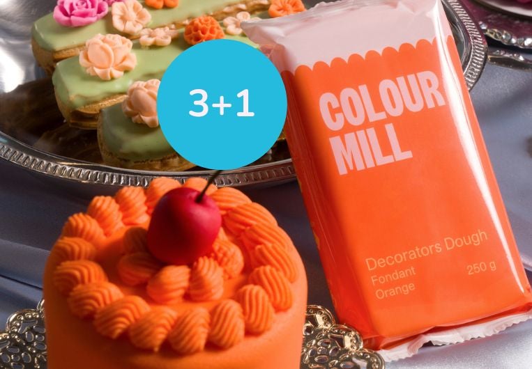 Vous souhaitez découvrir le nouveau Colour Mill Fondant Decorators Dough ? Avec ce fondant de qualité, vous réalisez facilement de superbes décorations et recouvrez vos gâteaux avec une finition professionnelle. Du 29 janvier au 5 février, profitez de notre offre de lancement : 3+1 gratuit, pour faire encore plus d’économies tout en découvrant ce nouveau produit.