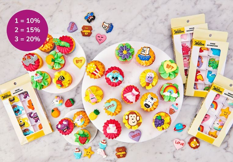 Envie d’apporter facilement une touche finale colorée et festive à vos pâtisseries ? Avec nos décorations en sucre, vous décorez tous vos gâteaux en un rien de temps. Jusqu’au 29 janvier, profitez d’une remise progressive sur les décorations en sucre : 10 % pour 1 produit, 15 % pour 2 produits et 20 % pour 3 produits ou plus.